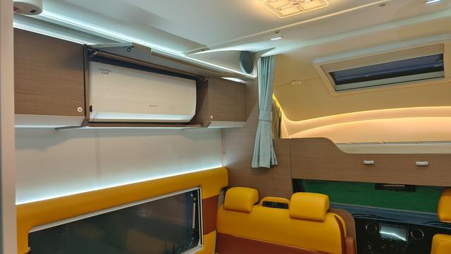 四人對卡座上方,安裝了一臺家用版的格力空調(diào),無論是制冷還是制熱,都能輕松滿足,更令人安心的是,在使用空調(diào)時,不必擔(dān)憂房車的電量不足,這款房車配備了800AH的鋰電池,足以確保一整晚的穩(wěn)定供電。